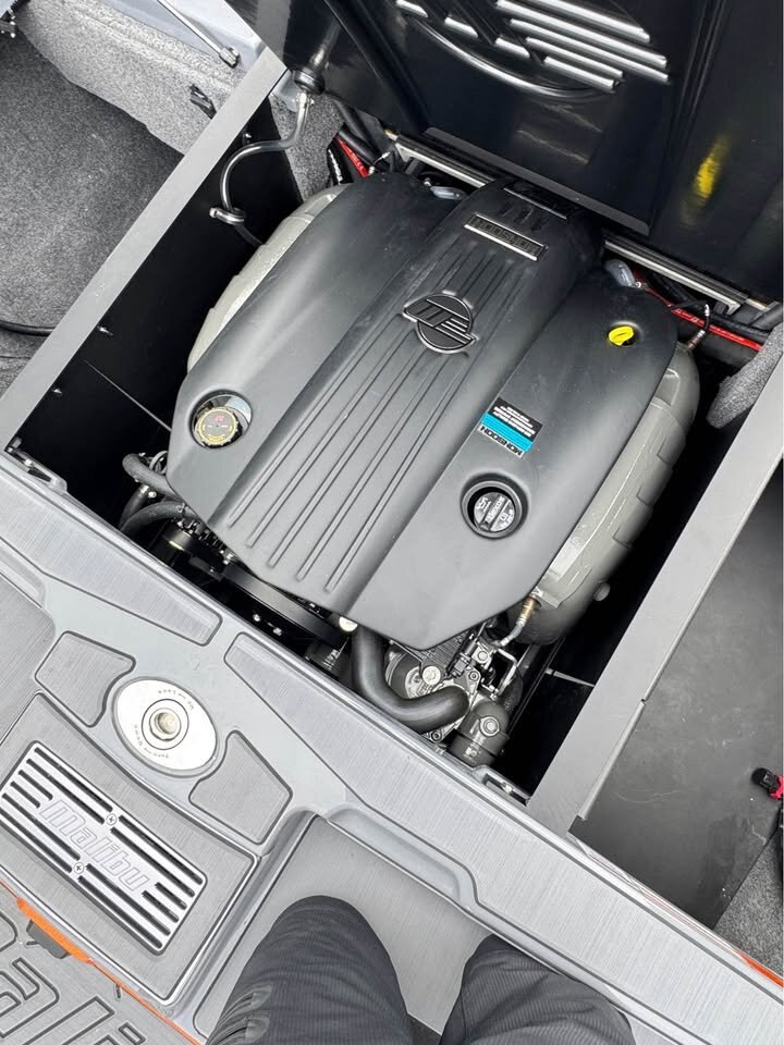 - Malibu M5Di engine, Dual battery, Pull up cleats, Power Wedge 3, SurfGate with surfband, Surf exhaust, Wet Sounds stereo with 12″ subwoofer, Transom stereo control, Icon 8 tower speakers, Nonskid foam flooring, Flip up bolster drivers seat, Heater, Bimini top, Boat cover, Sport dash rotary switch, Tandem axle Malibu trailer with swing tongue.
