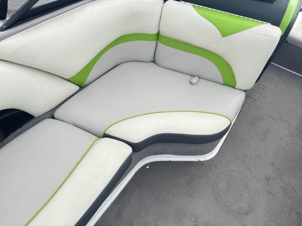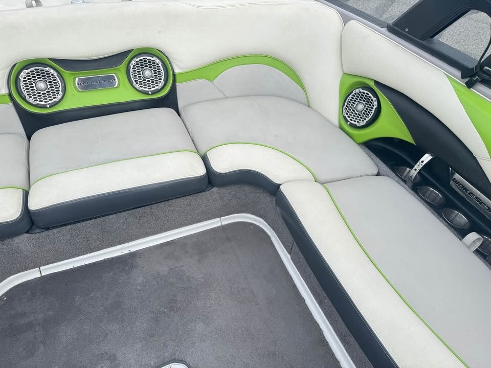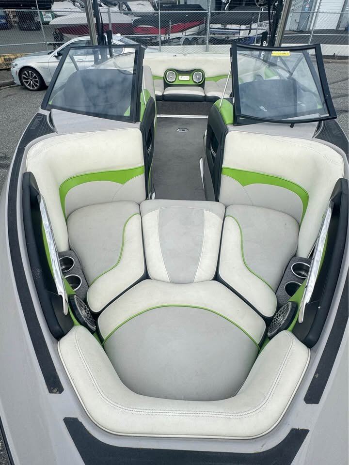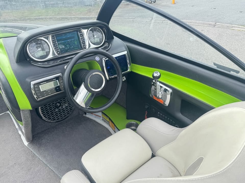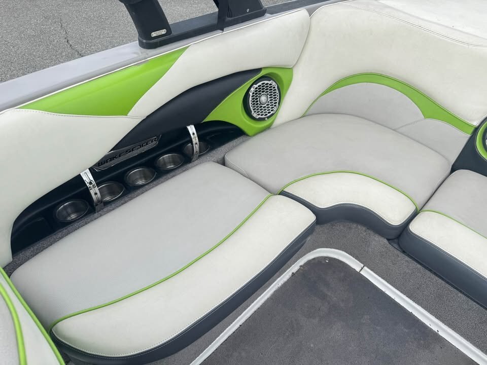- Featuring the Indmar monsoon 350, Dual Battery set up, 3 vent heater, Mali View display with rider pre-sets, Flip up bolster drivers seat, snap out carpet, pull up cleats, Swivel wake/surf racks, Underwater led swim lights,  Rockford BT stereo with 12″ sub, Wet Sounds tower speakers, Tower lights, Tower mirror, Bimini top, boat cover, rear swim ladder, Tandem axle Boatmate trailer with swing tongue.