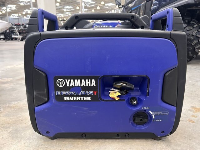2022 Yamaha Power Inverter Series EF2200IST The new EF2200iST offers 2,200 watts of superior, confident power output and world-class Yamaha reliability for the RV, the job site, home backup, tailgating, or anywhere else you need clean, portable power. Features may include: The EF2200iST inverter generator boasts a rugged design with a powerful high-output Yamaha MZ80 engine. The EF2200iST is fitted with Yamaha Quiet Technology. Its quiet operation allows you to have a conversation and not even realize it\'s running. (57-65 dBA) The EF2200iST offers high power, sophisticated quiet technology, rich features and a rugged design. It weighs a mere 25 kg (44 lb), and with the tri-handle design is easy to transport. If you need more power, the EF2200iST has a convenient Twin Tech parallel function allowing you to connect two EF2200iST units together to provide 30 amps of rated power. A new design makes moving around the campsite or worksite a breeze with the tri-handle design - designed for two people to easily move the unit. Starting and stopping the unit is simple now with a Yamaha Smart Dial. Long Run Time - The EF2200iST features Smart Throttle, a load-sensing rpm control that allows greater fuel efficiency and noise reduction by automatically adjusting engine speeds to match the load. It will run up to 10.5 hours at 1/4 rated load on a tank of gas. The all new LED-illuminated control panel makes it easy to check the status of your generator both day and night. The control panel features a multi-function display as well as an illumination light that cascades over the entire control face of the unit for easier low light operation. Integrated into the control panel is a regulated DC socket outlet allowing more devices to easily connect to the generator. In the event of a power overload, the EF2200iST features an Overload Power Reset enabling the device to restore power without shutting the unit down by holding down the reset button for up to three seconds. The EF2200iST features the Yamaha Easy Carburetor Drain that allows you to empty the fuel from the carburetor to help prevent stale fuel problems and prepare the unit for long term storage. Fuel gauge - allows fuel level to be seen at-a-glance. The Yamaha EF2200iST inverter generator supplies clean, high power output featuring Pulse Width Modulation (PWM) with its inverter system.