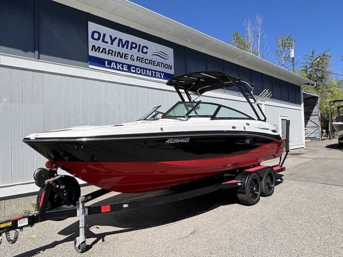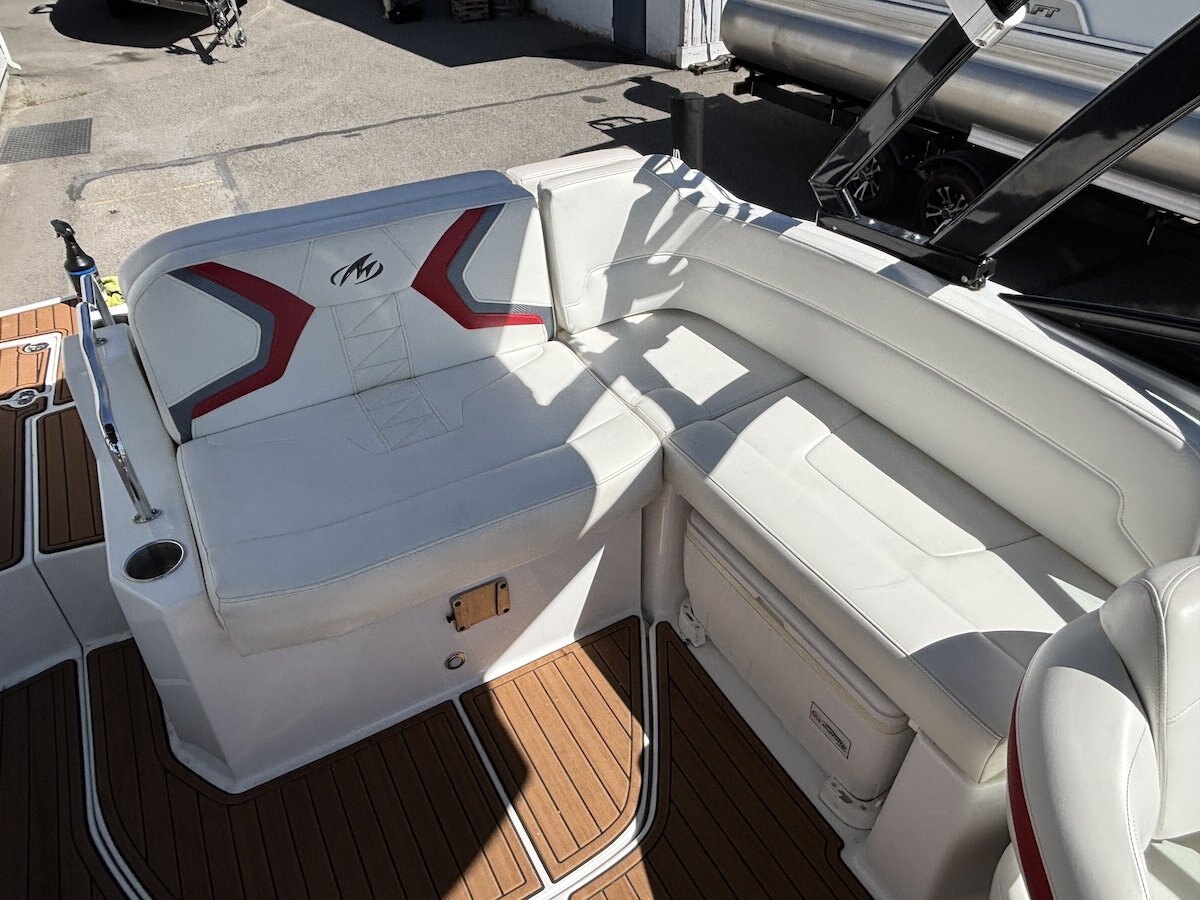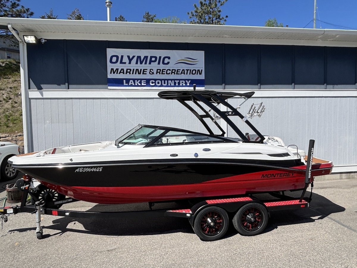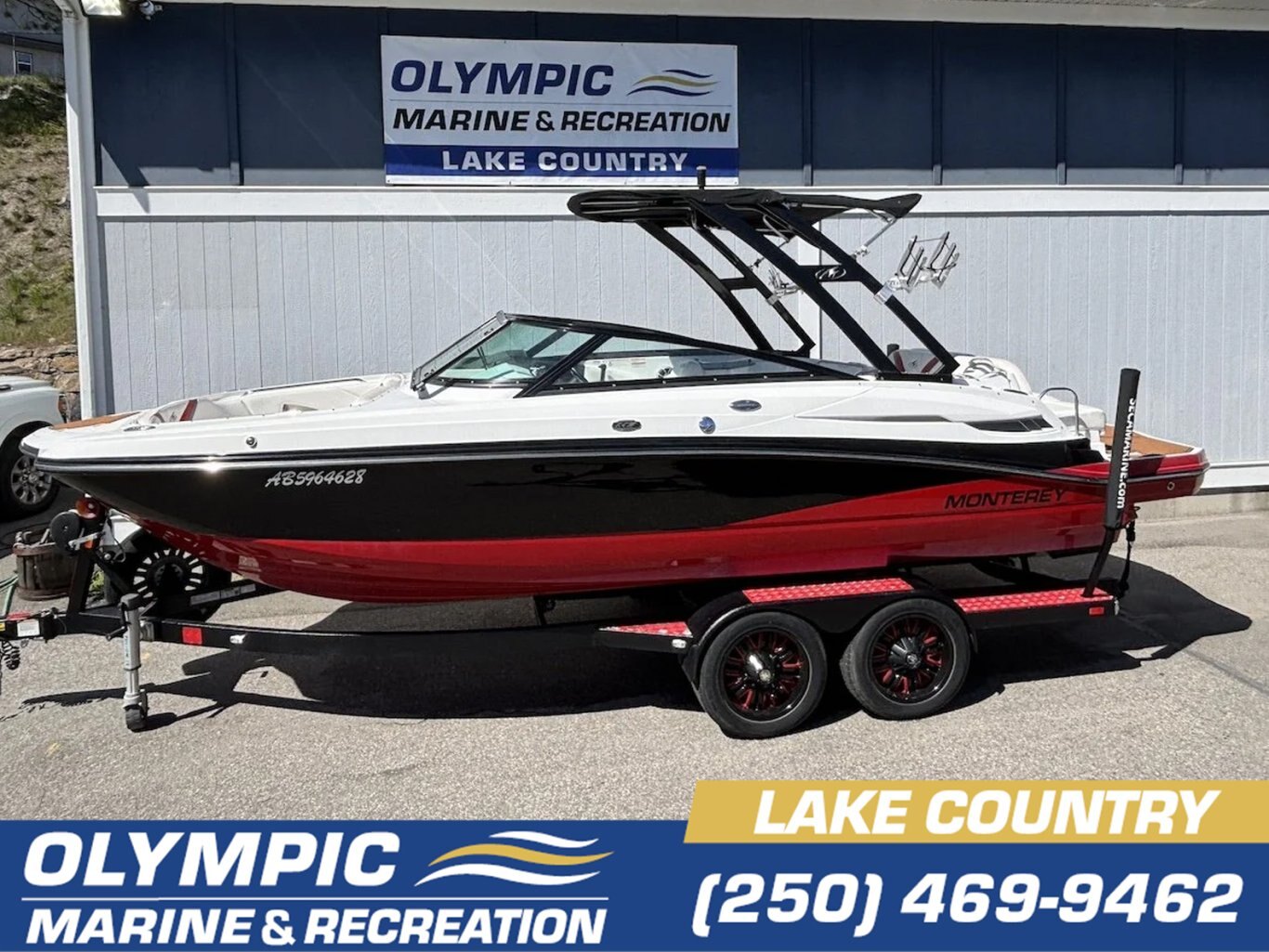 The 2015 Monterey M3 is a bowrider boat with a modified-vee hull, designed for day cruising, watersports, and freshwater fishing.