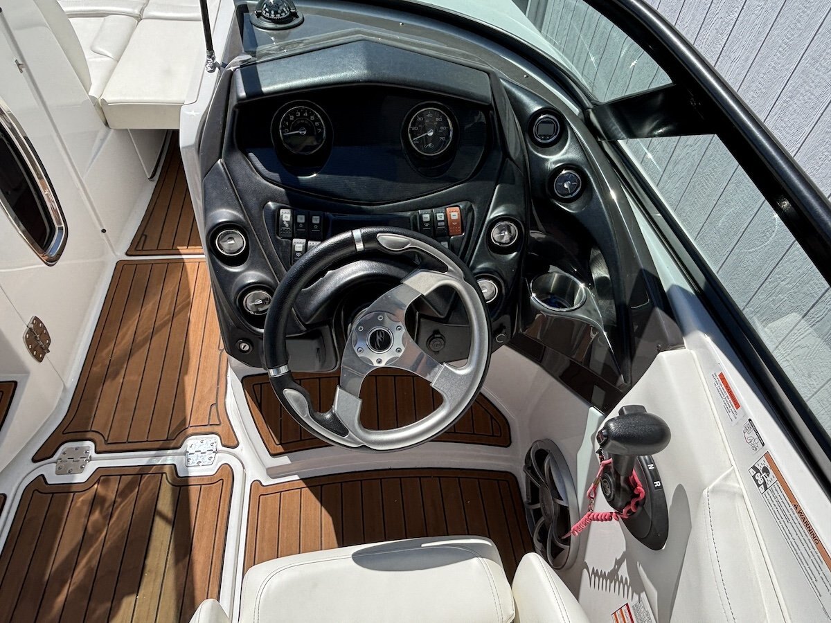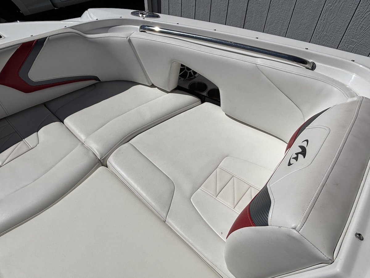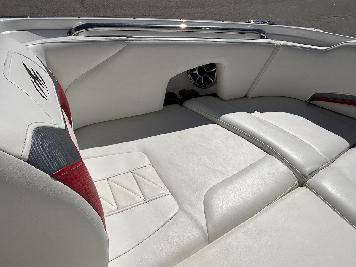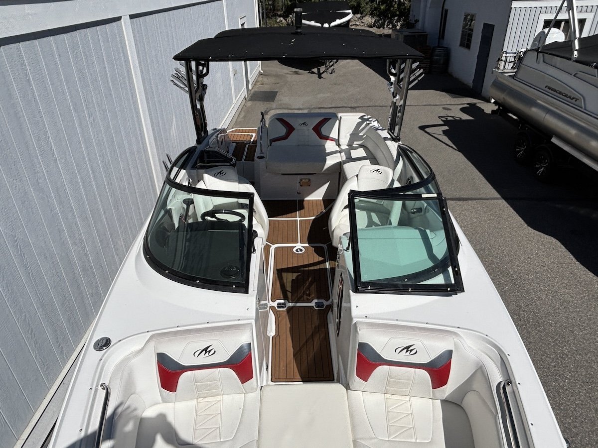 The 2015 Monterey M3 is a bowrider boat with a modified-vee hull, designed for day cruising, watersports, and freshwater fishing.