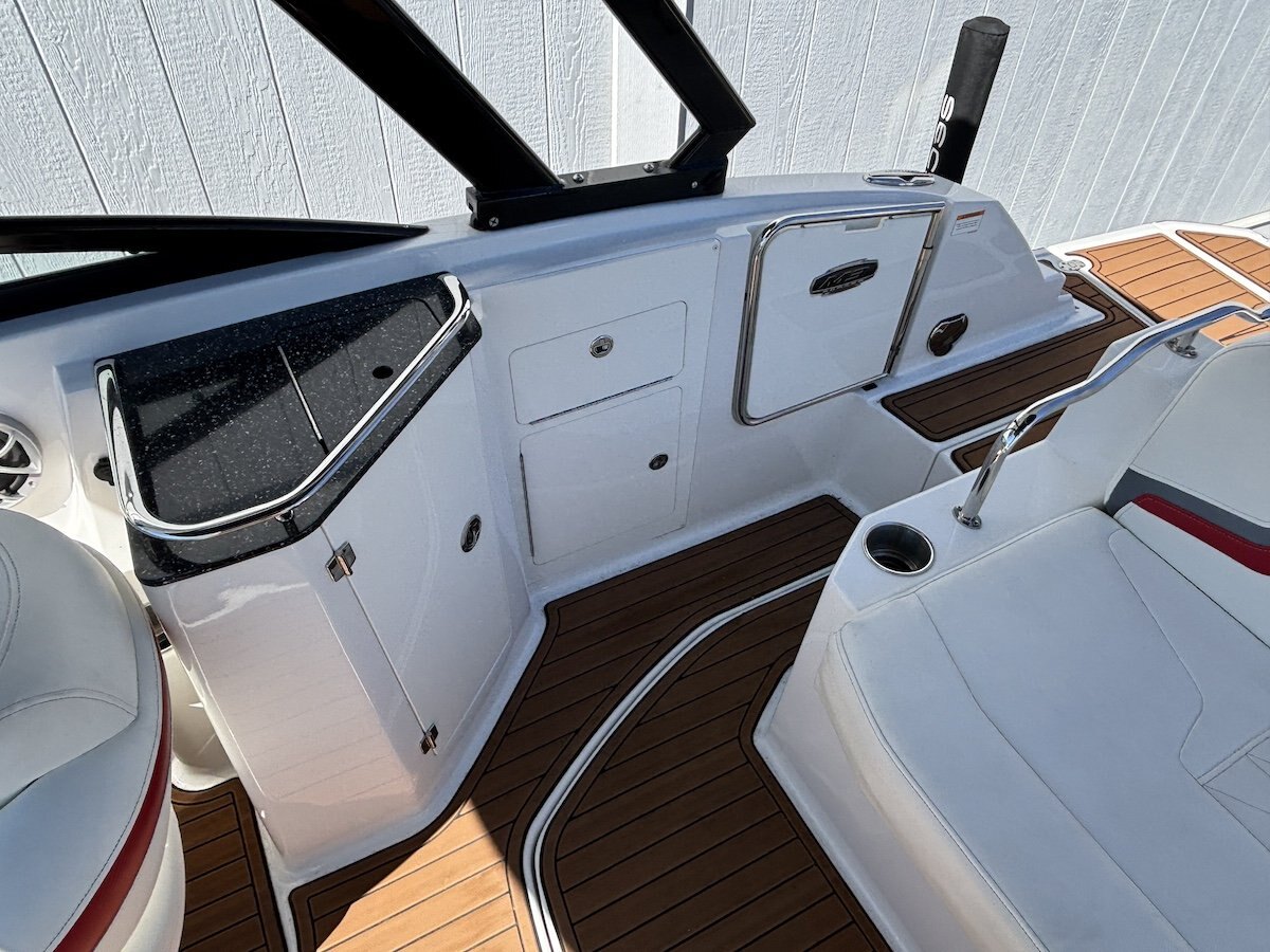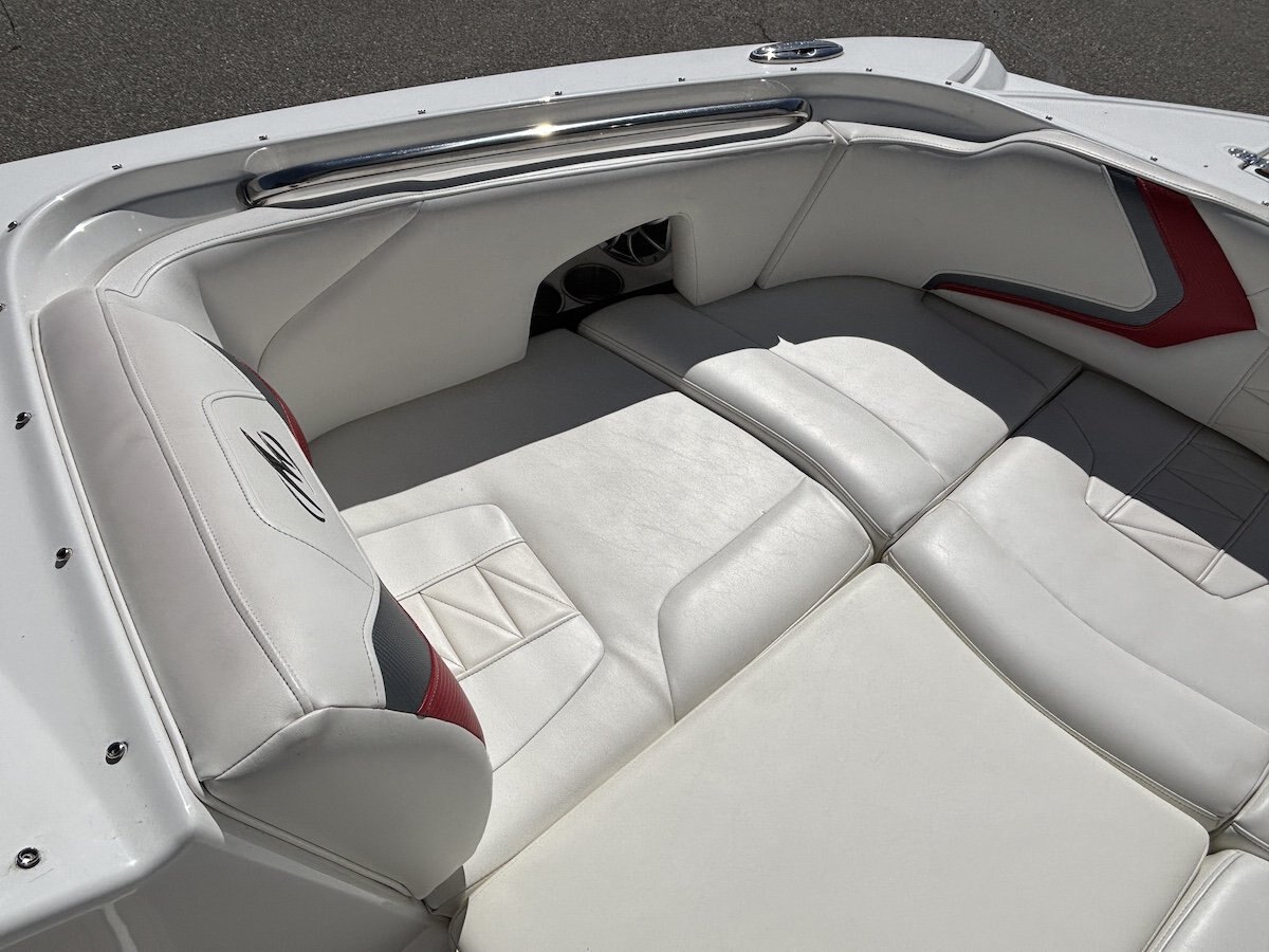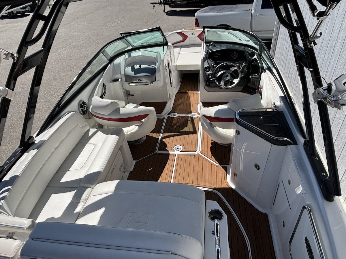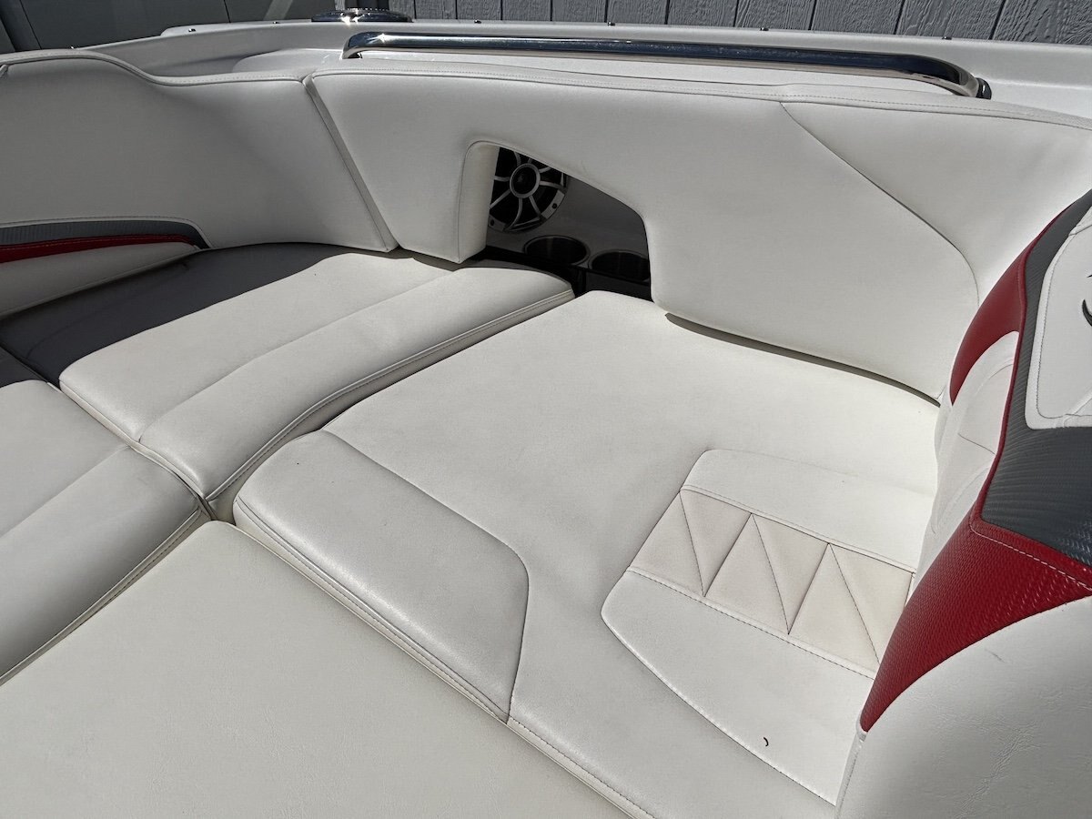 The 2015 Monterey M3 is a bowrider boat with a modified-vee hull, designed for day cruising, watersports, and freshwater fishing.