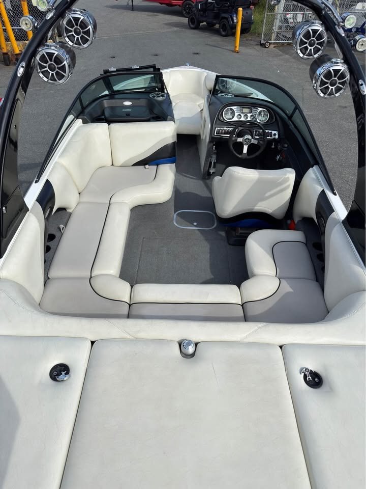 Looking for a fun, value-packed wake boat? The 2008 Malibu V‑Ride checks all the boxes: affordable, feature-rich, and great for cruising, wakeboarding, skiing – you name it. Why It’s a Great Pick - Wakeboarding value – Built on the proven SV23 wake hull with through-bolted engine mounts and full stringer system, it delivers smooth, consistent wakes and stable handling - Strong 320 hp V‑drive power – Equipped with an Indmar Monsoon 5.7L (320 hp) engine; some 340HP options available for stronger performance -Ballast-ready fun – Comes standard with 500 lb center ballast and optional rear 200 lb tanks (total up to 900 lb), great for wake customization . - Sporty features included – Illusion X wake tower, Malibu cruise control, and full wrap-around seating, plus stereo with tower speakers - Balanced ride – At 21 ft and about 3,000 lb dry, it handles predictably with tight turns and surprisingly smooth performance for its class.