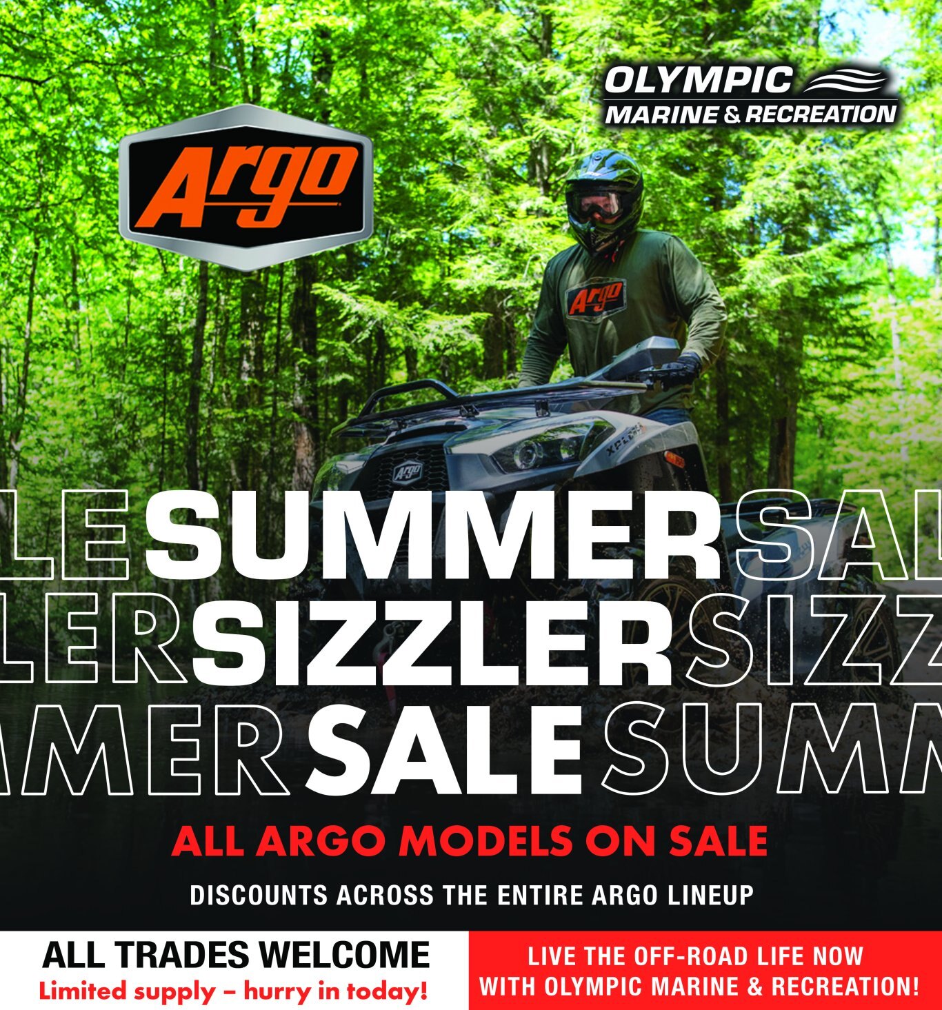 We’re turning up the heat with limited-time special pricing on ALL Argo models at all locations! Whether you’re chasing adventure, exploring the backcountry, or living the off-road dream, there’s never been a better time to own an Argo.