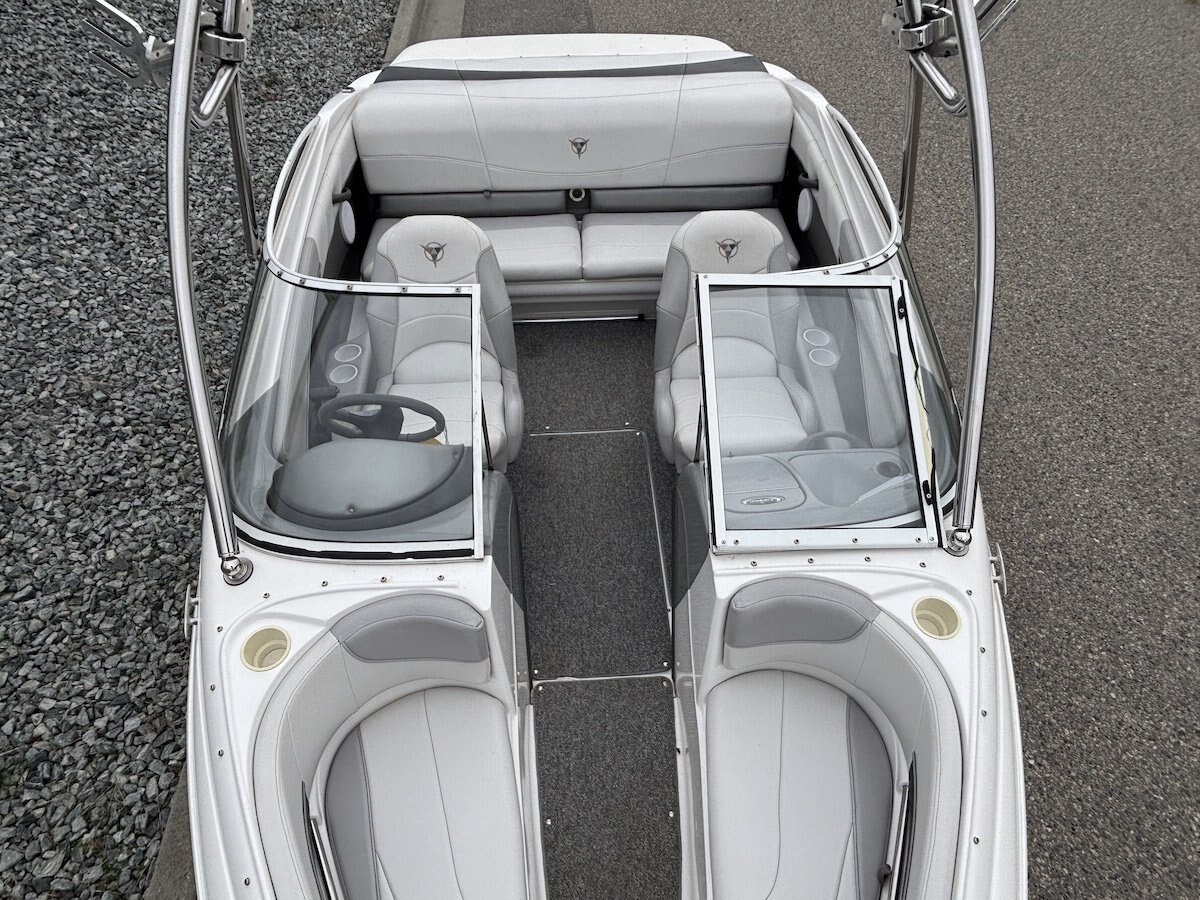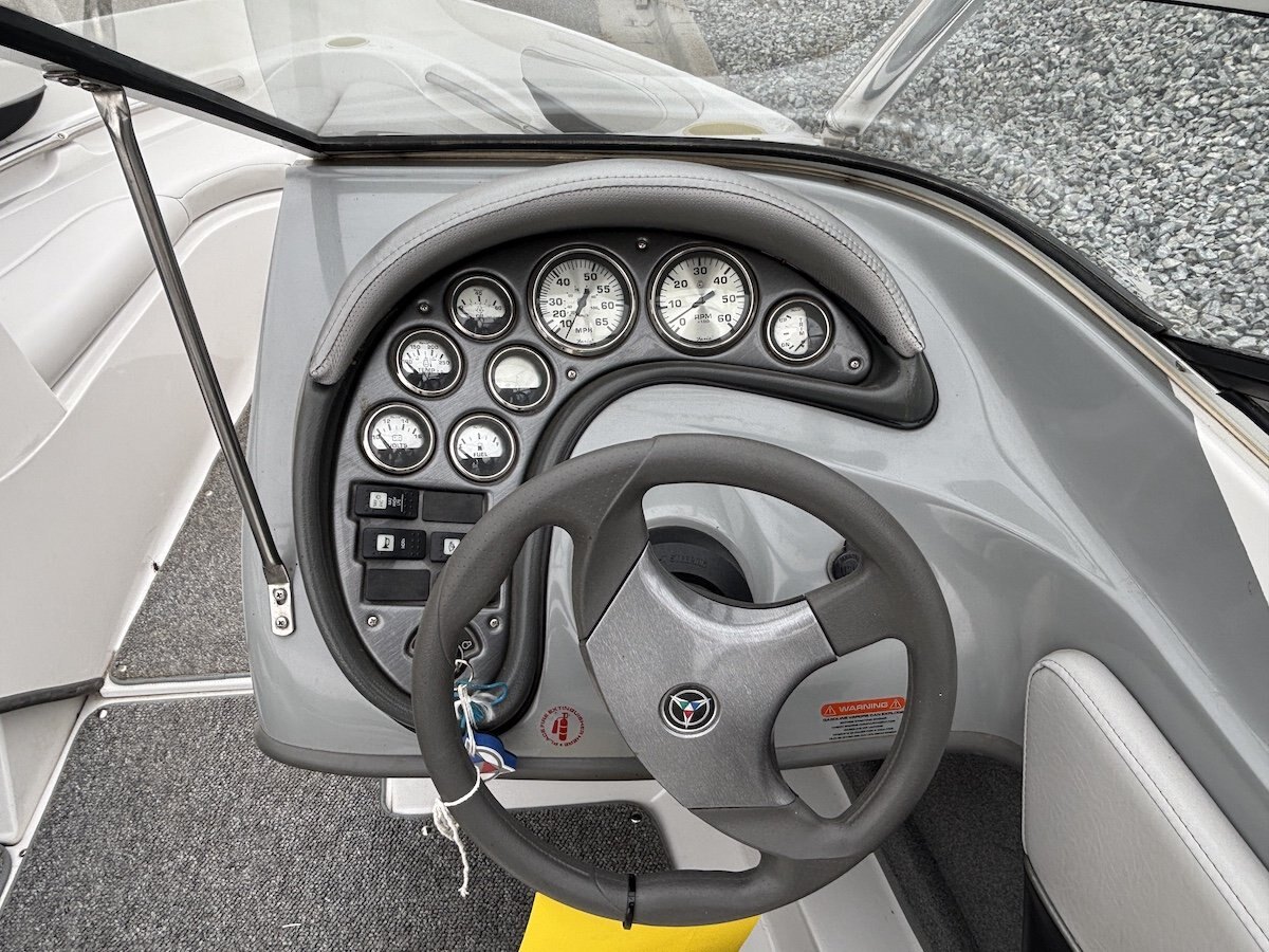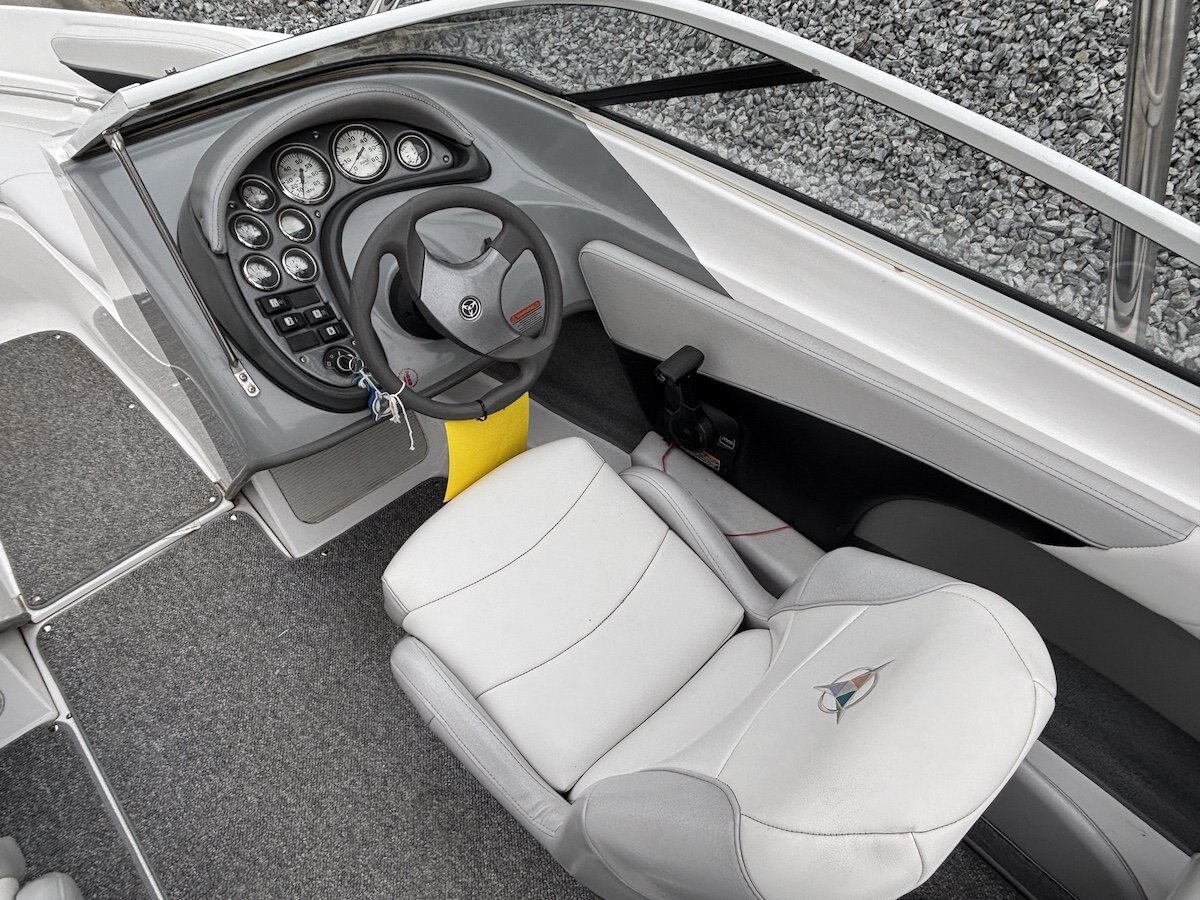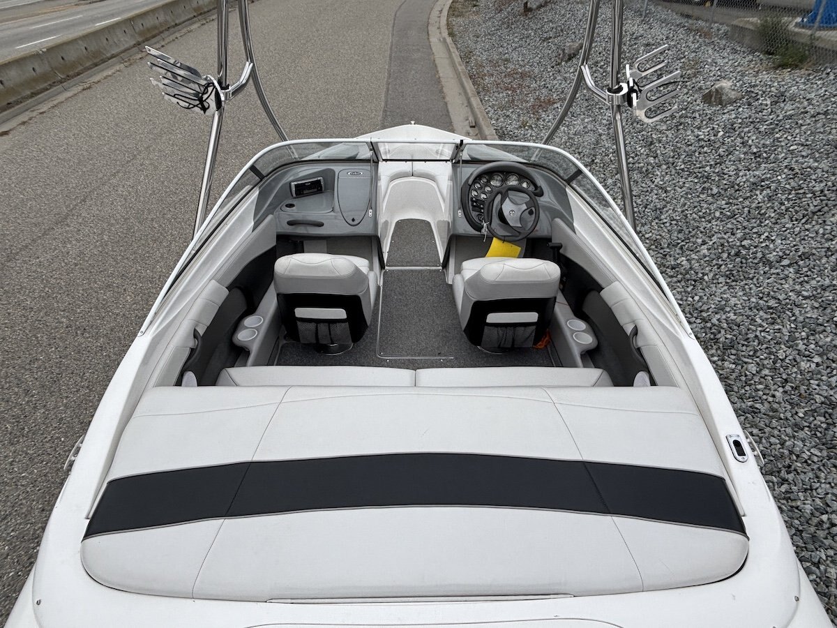 Not Your Average 20ft Bowrider…. This is a great Campion S545 Allante Bowrider that’s large enough to handle big chop and open water, but small enough to be easily towed and launched whenever the notion takes you. This boat is clearly a cut above the usual North American bowrider brigade, including the likes of Bayliner, Maxum, Larson and others. Watch the video tour to find out why… When you look closely at the details it’s easy to tell that the design and engineering that goes into building this Campion is well beyond what you’d expect for a boat of this size and type. From the plush upholstery and racy helm layout to the high performance hull shape, this boat is accomplished in every regard… However given it’s easy to manage size, both around the dock and on the road (being carried nicely on a twin axle roller coaster trailer) and modest towing weight, this boat is every bit as easy to own as any 20ft bowrider. So really, you get the best of both worlds… A boat that’s easy to tow, launch, recover and store; as well as one with fantastic performance and striking looks that’s a cut above the rest. Whether you’re upgrading from a jet ski or smaller boat, or even looking to get started boating in style, this Campion 545 Allante is definitely worth a close look. This one is in lovely condition.