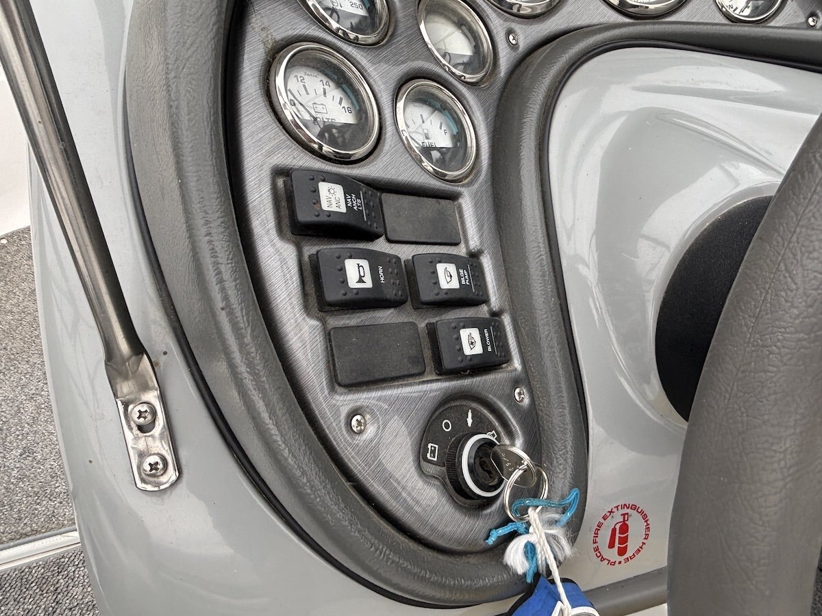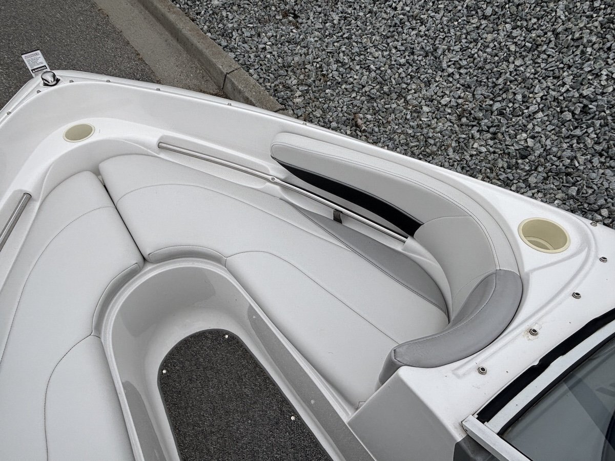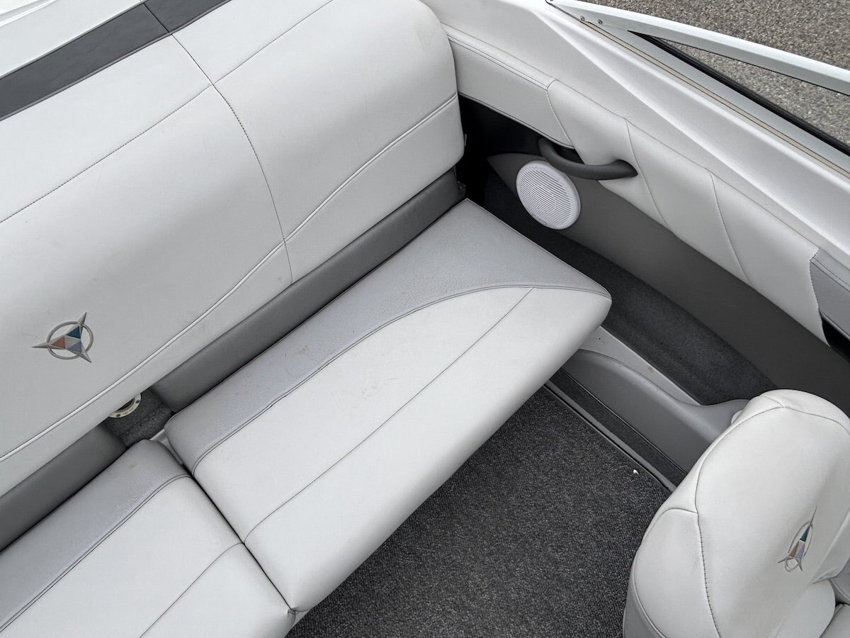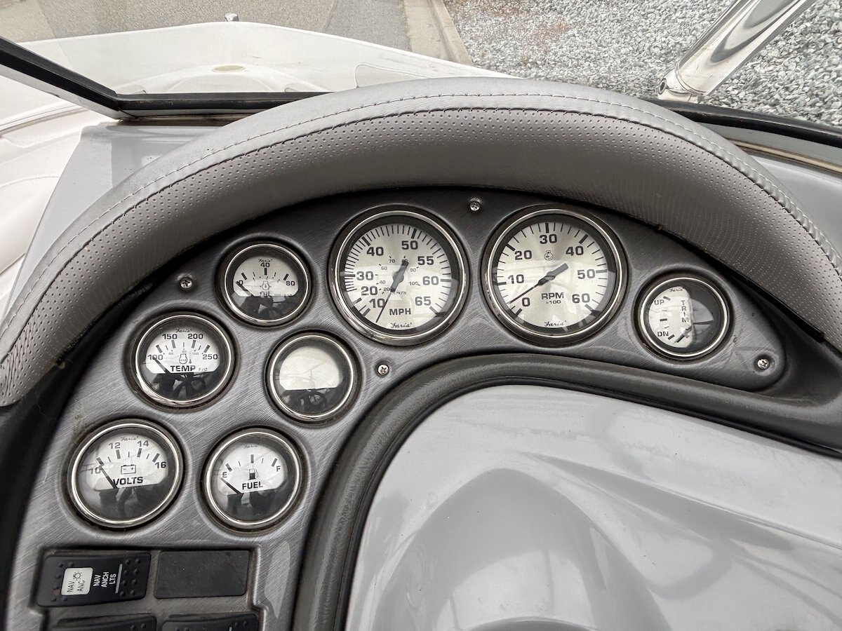 Not Your Average 20ft Bowrider…. This is a great Campion S545 Allante Bowrider that’s large enough to handle big chop and open water, but small enough to be easily towed and launched whenever the notion takes you. This boat is clearly a cut above the usual North American bowrider brigade, including the likes of Bayliner, Maxum, Larson and others. Watch the video tour to find out why… When you look closely at the details it’s easy to tell that the design and engineering that goes into building this Campion is well beyond what you’d expect for a boat of this size and type. From the plush upholstery and racy helm layout to the high performance hull shape, this boat is accomplished in every regard… However given it’s easy to manage size, both around the dock and on the road (being carried nicely on a twin axle roller coaster trailer) and modest towing weight, this boat is every bit as easy to own as any 20ft bowrider. So really, you get the best of both worlds… A boat that’s easy to tow, launch, recover and store; as well as one with fantastic performance and striking looks that’s a cut above the rest. Whether you’re upgrading from a jet ski or smaller boat, or even looking to get started boating in style, this Campion 545 Allante is definitely worth a close look. This one is in lovely condition.