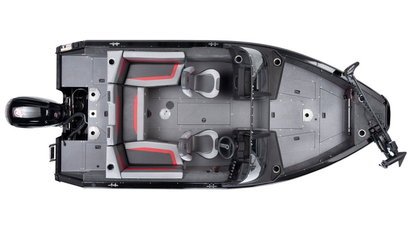 • Stern seating area with a livewell underneath (must ordered and installed at the factory) (red accent)