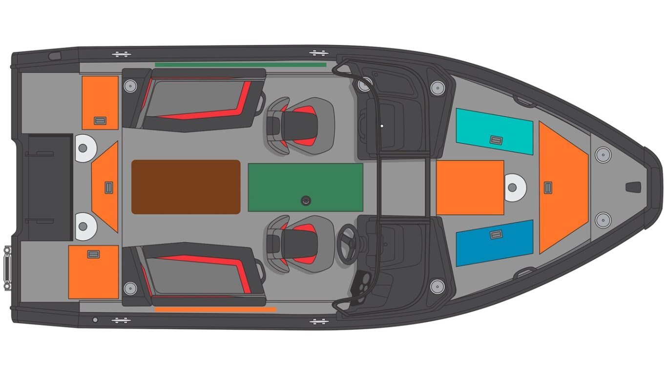 • Stern seating area with a cooler underneath (can be install by the dealer but no livewell system) (blue accent)