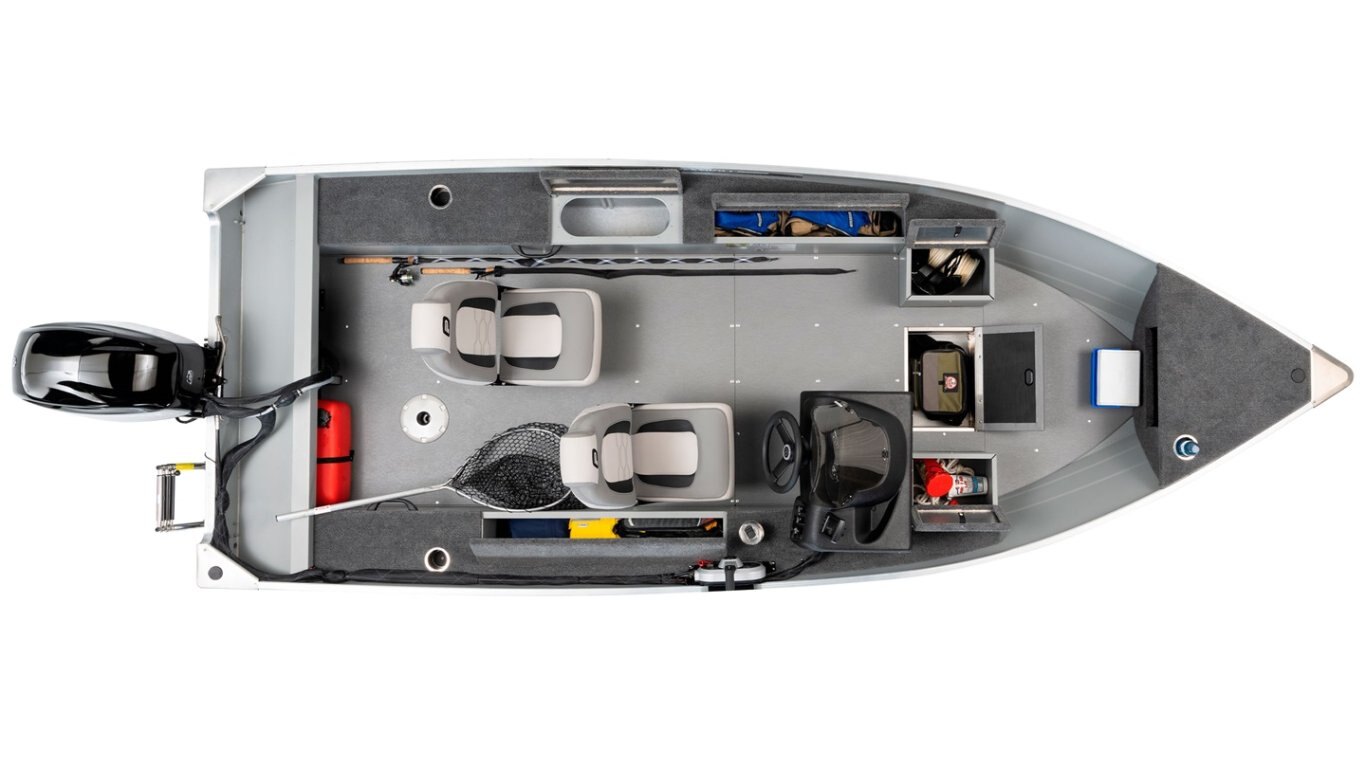 All the flat surfaces are covered with anti-skid marine grade vinyl Electric bilge pump Navigation lights 1 handle 4 cup holders 1 battery holder Emergency reboarding ladder Transducer(s) mounting plate Pressure-treated wood floor 2 side storage compartments In-floor bow storage