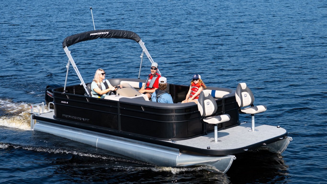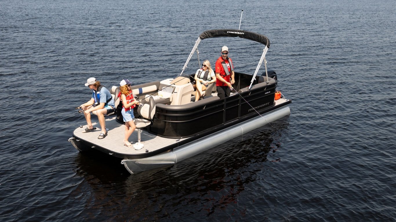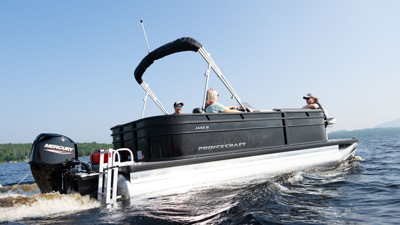 • Black Edition includes: Black painted railing, black anodized deck bumper, darker upholstery, deluxe captain's chair, 3D Princecraft® black chrome logo on both sides and front door