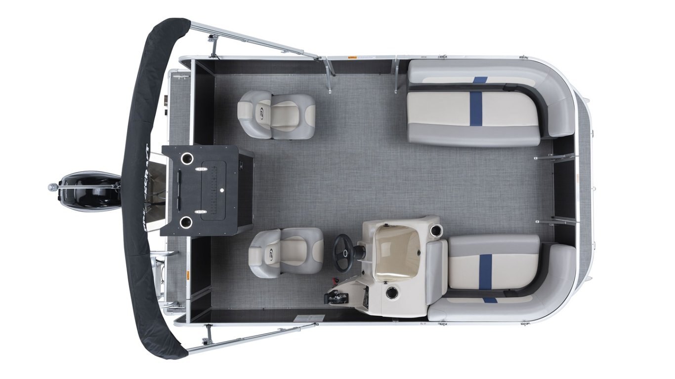 • Graphic package includes: Blue metallic stripe all around the pontoon