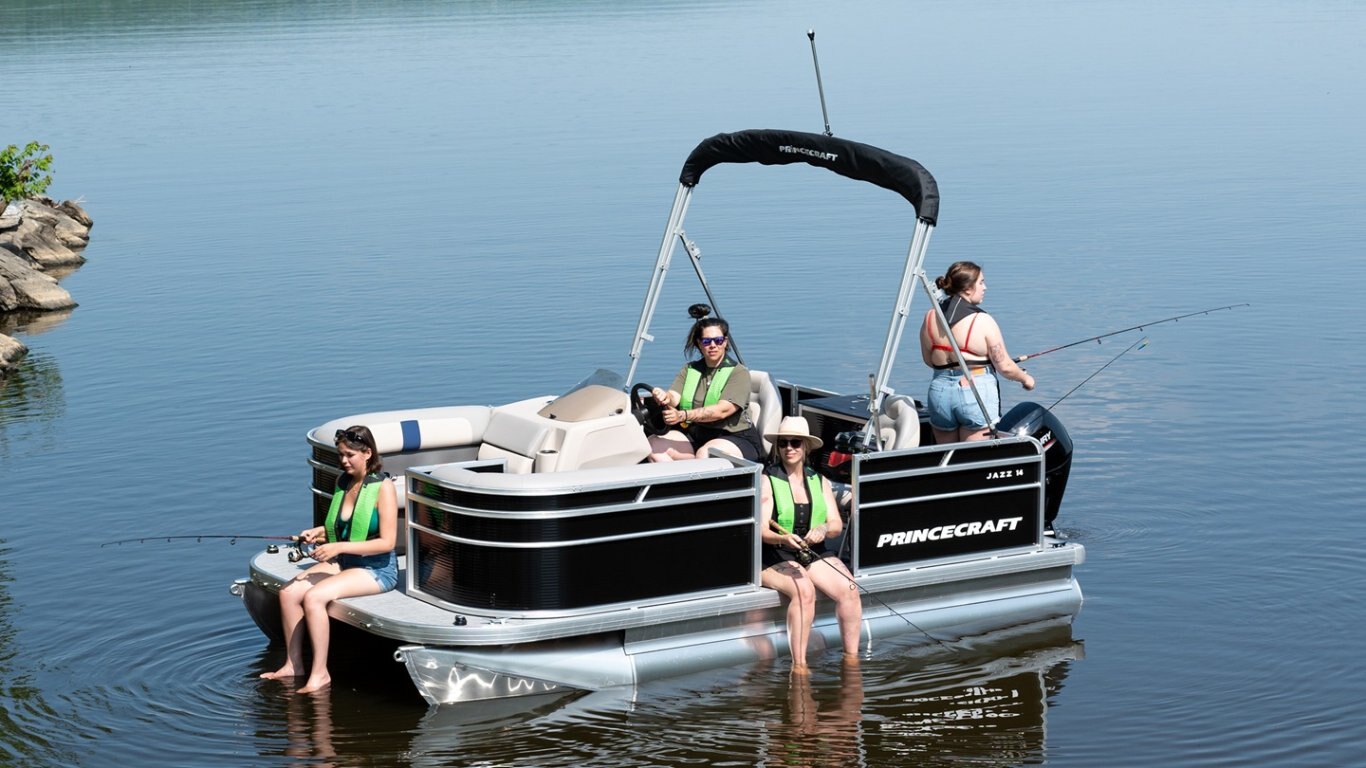 2026 Princecraft Jazz 14 2RS Grey metallic graphic package PearlOptional Bow beige pedestal mount removable table