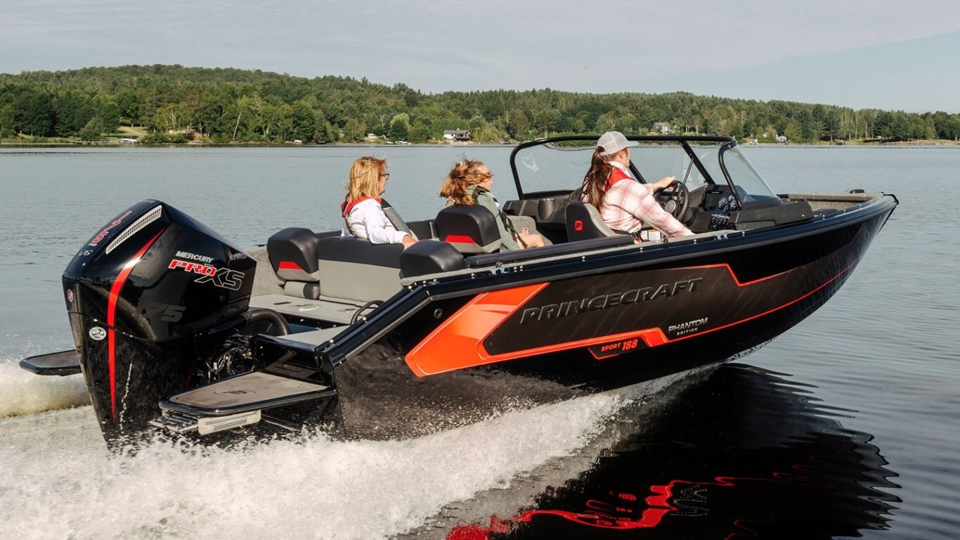 2026 Princecraft Sport 188 Anthracite grey (blue accent)Optional removable ski pylon