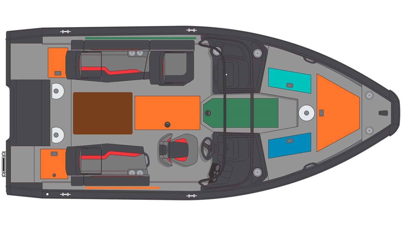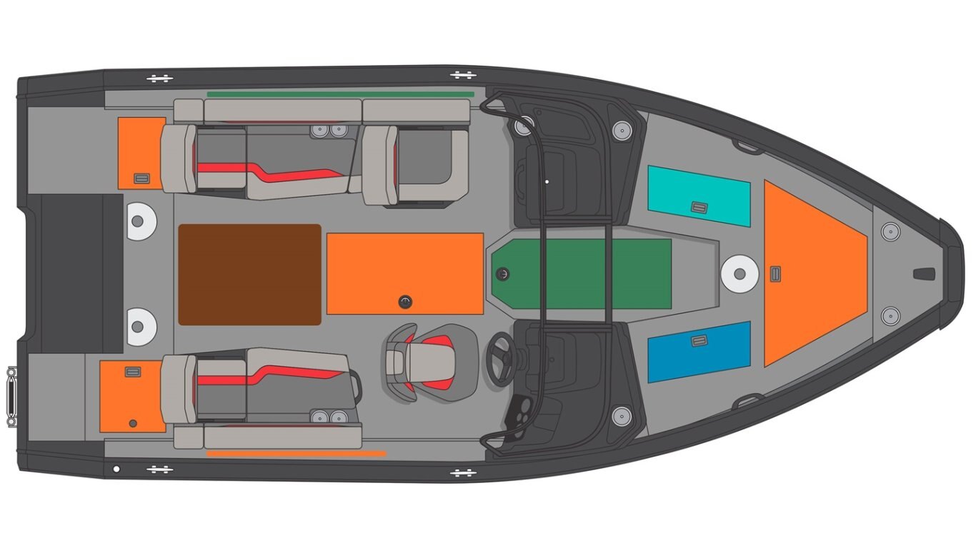 • Stern seating area with a cooler underneath (can be install by the dealer but no livewell system) (red accent)