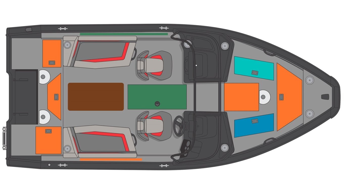 • Stern seating area with a cooler underneath (can be install by the dealer but no livewell system) (red accent)