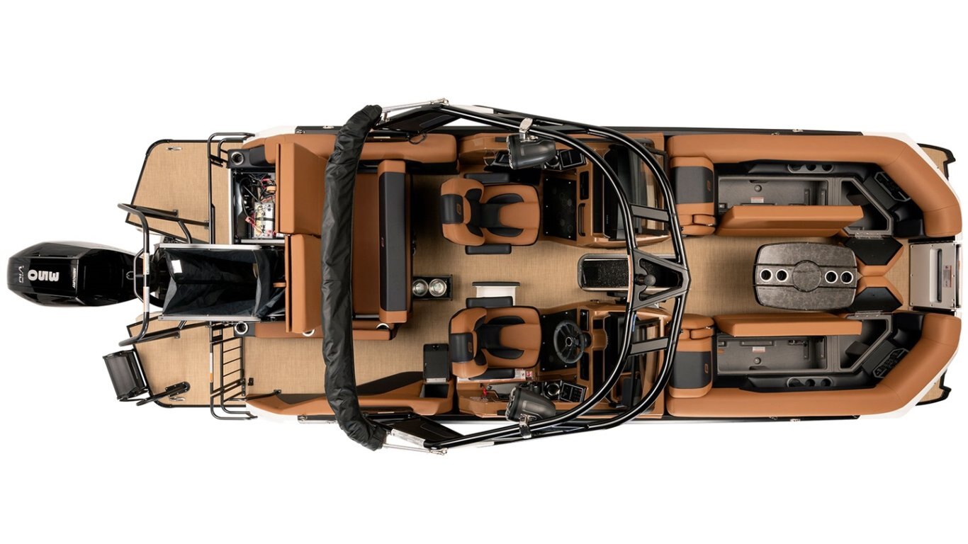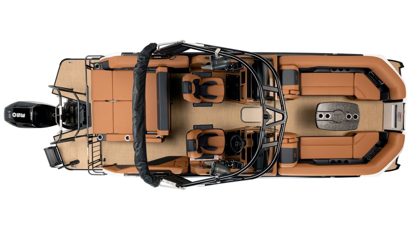 • Sport Edition including premium upholstery textured vinyl and LED lighting on floor, bimini top, pontoon logs, speakers, and fixed cup holders