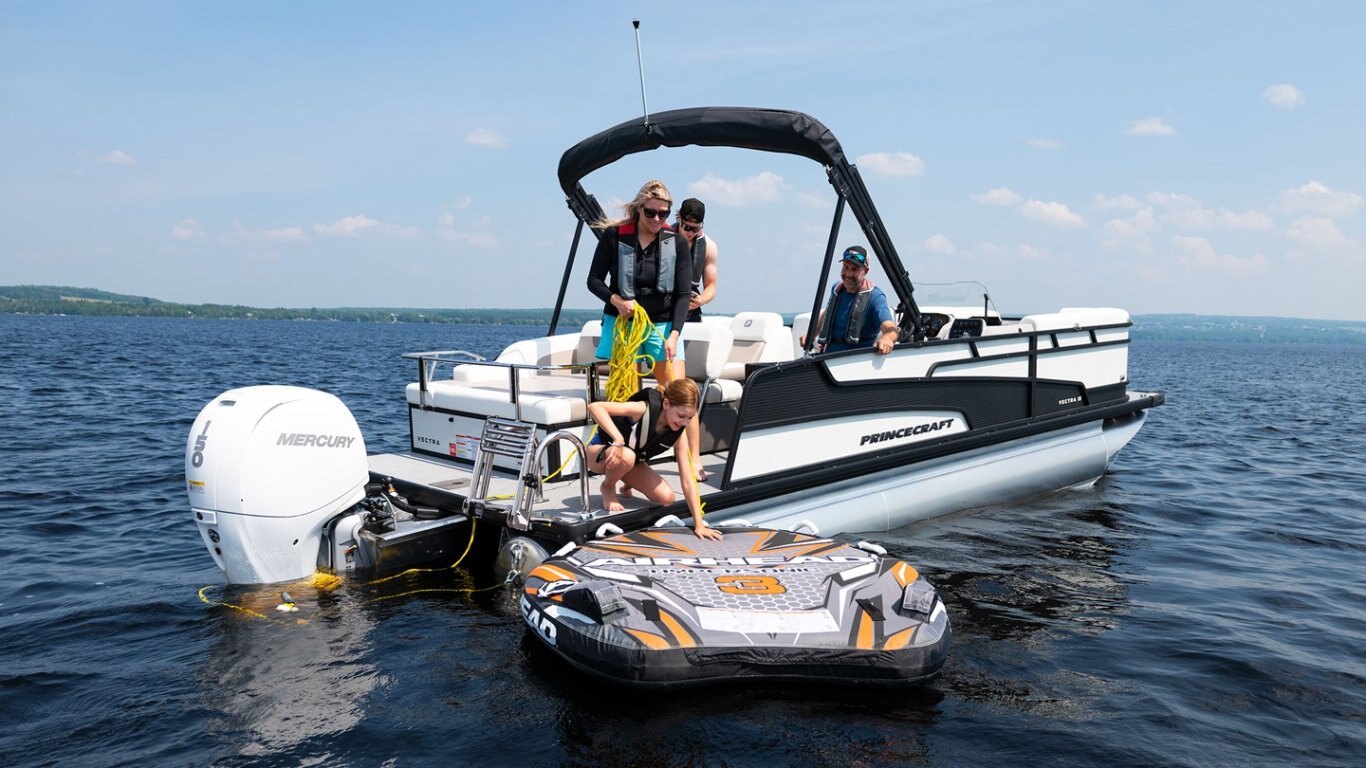 • Altitude package includes: 3D Princecraft® black chrome logo on both sides and front door, LED docking lights, deluxe driver seat (if applicable passenger captain's chair with slider), LED lights under driver helm and furniture