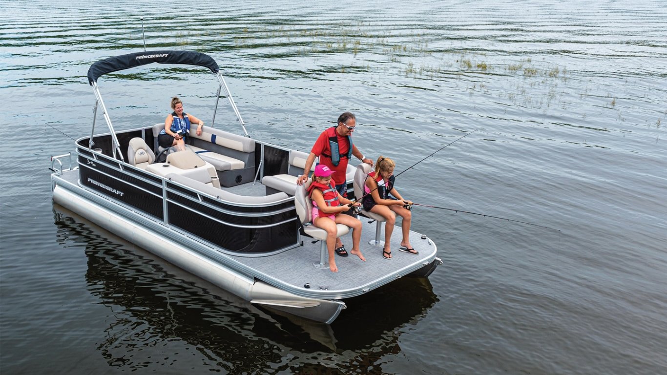• Black Edition includes: Black painted railing, black anodized deck bumper, darker upholstery, deluxe captain's chair, 3D Princecraft® black chrome logo on both sides and front door