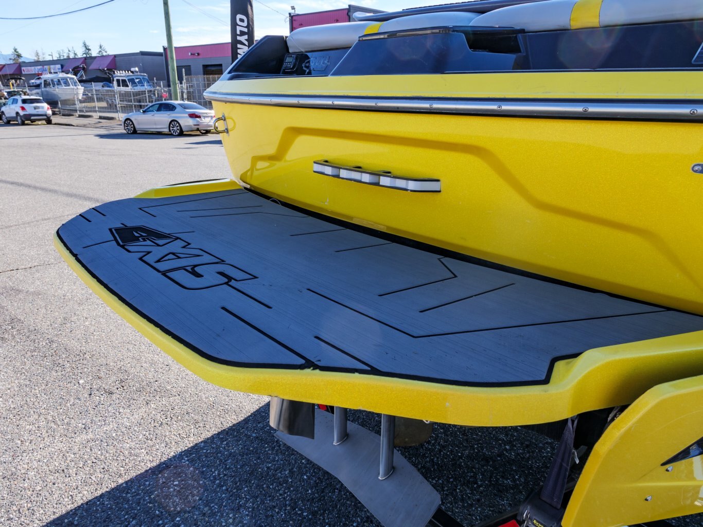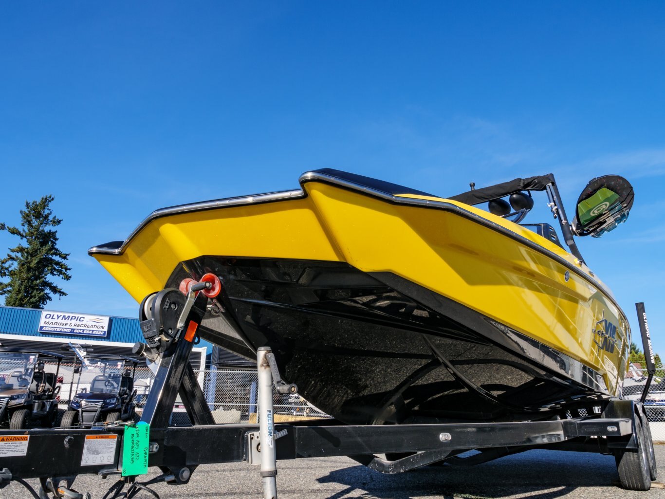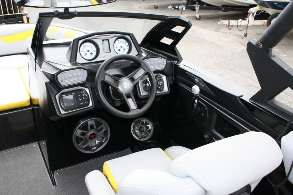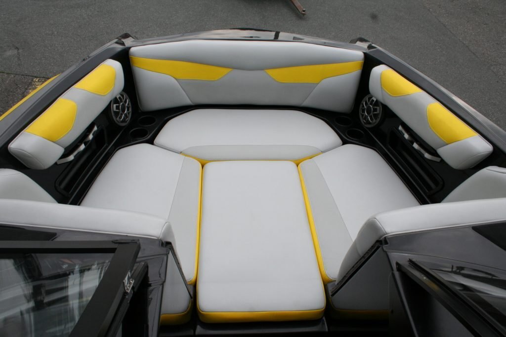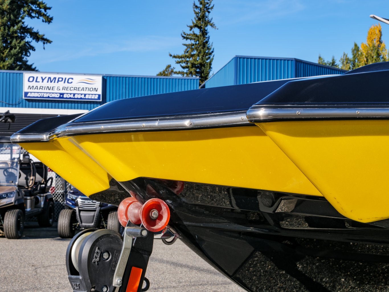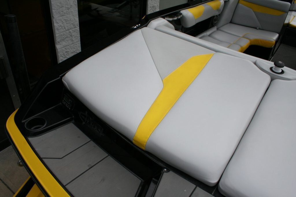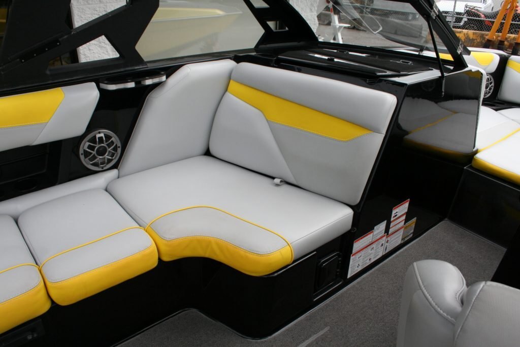 A High resolution Heavy Metallic Yellow (This Boat absolutely glows on the water)  Featuring the PCM Monsoon 409 engine, Dual battery set up, Pull up cleats, Power Wedge 3, Surfgate with surfband, Wet Sounds audio system, 10″ subwoofer, Wet Sounds tower speakers, Fire suppression system, Flip up bolster drivers seat, Snap out carpet, Bimini top, Boat cover, Heater, Tandem axle. Malibu trailer with swing tongue.