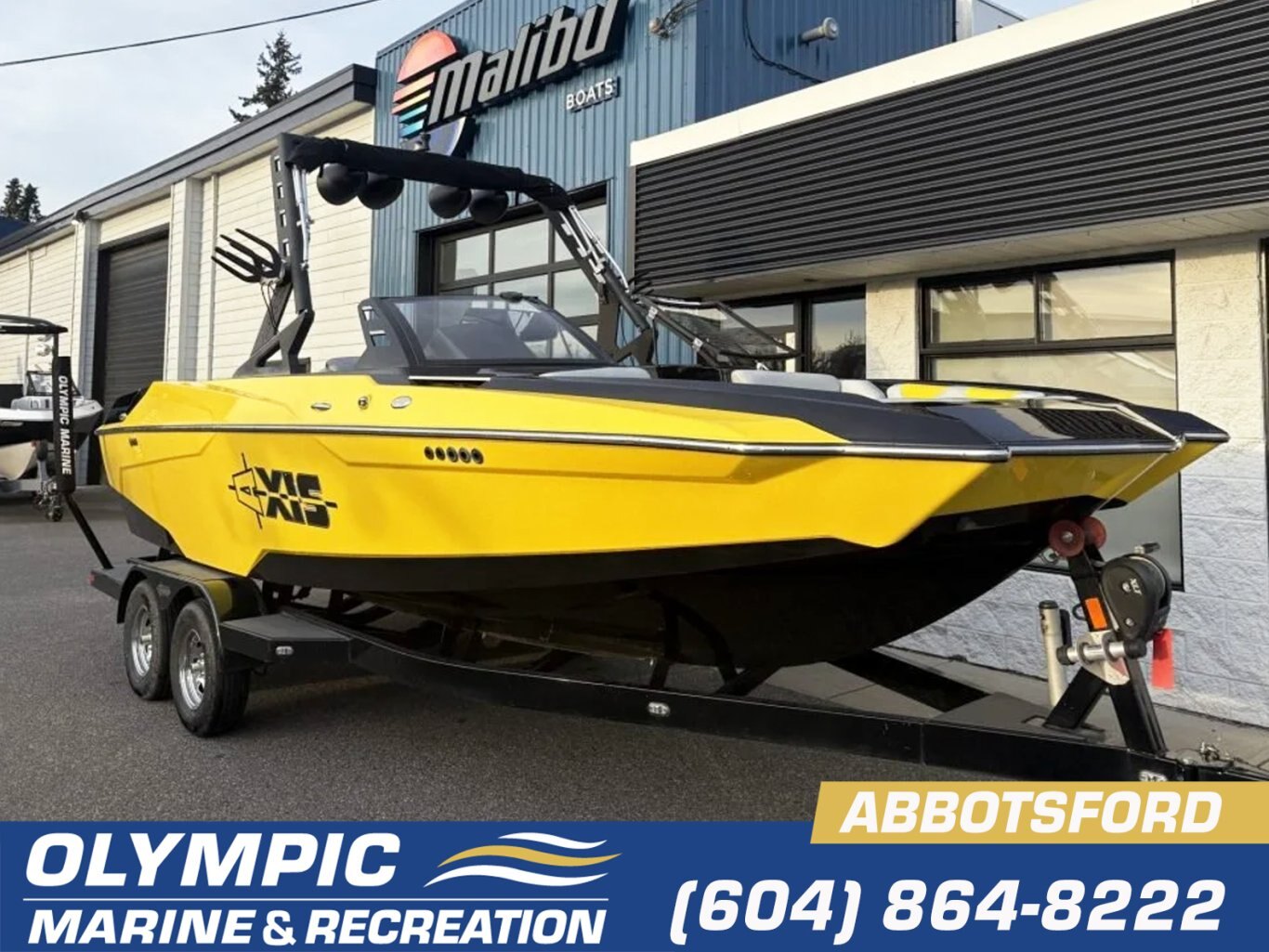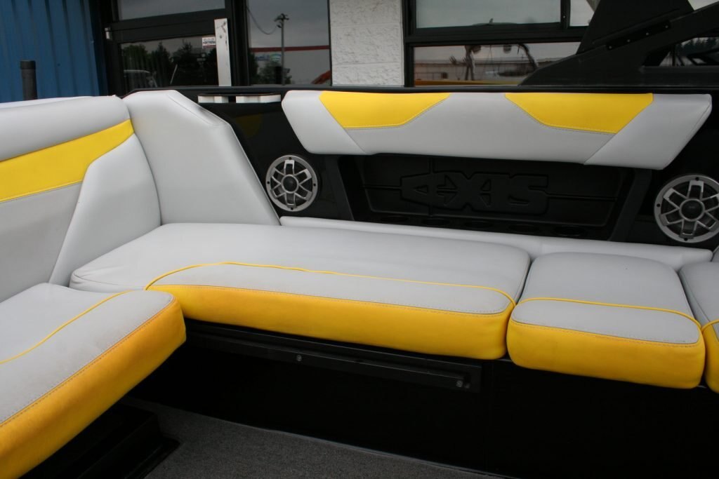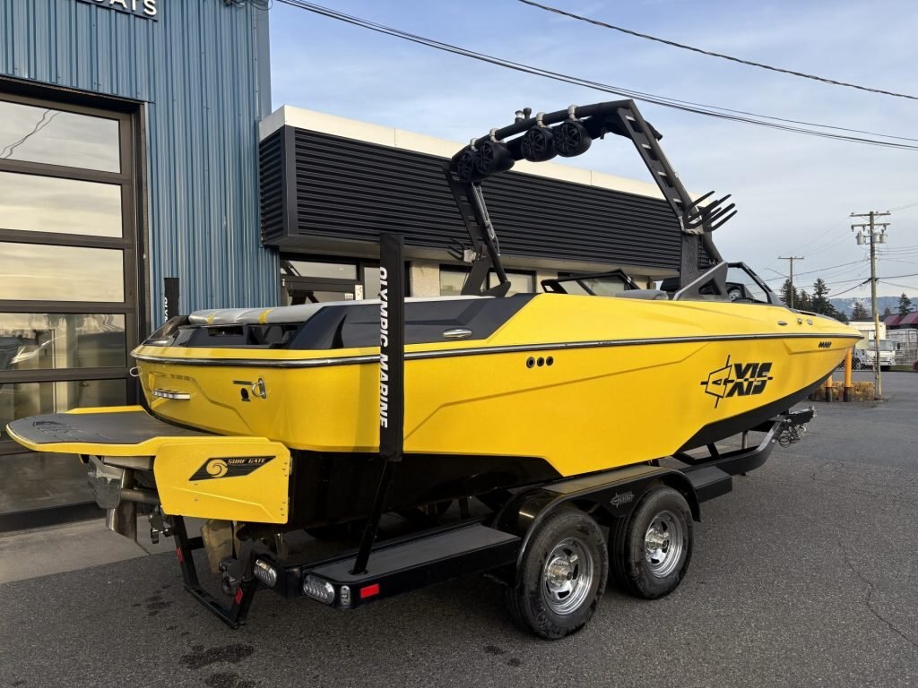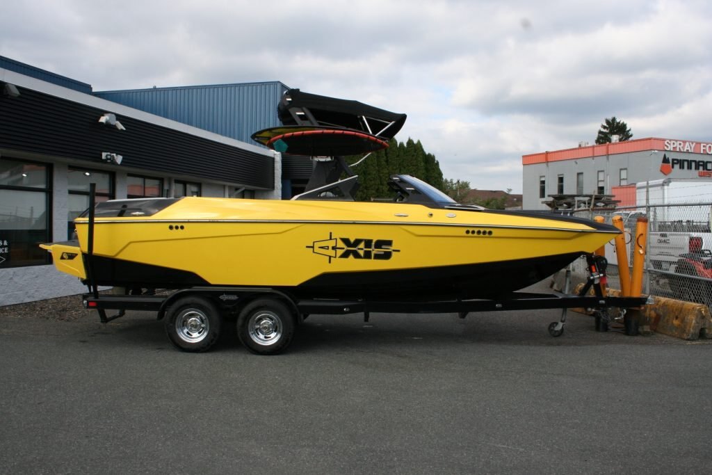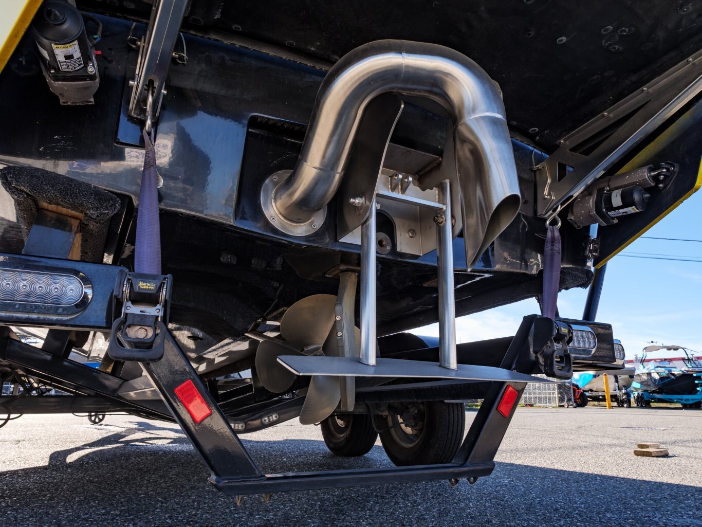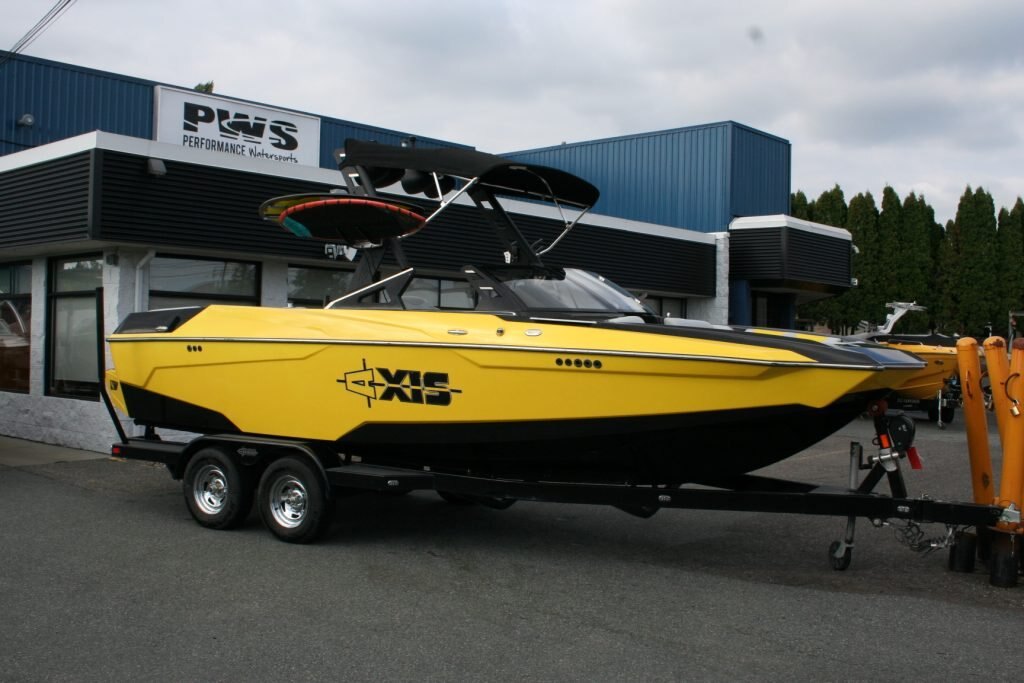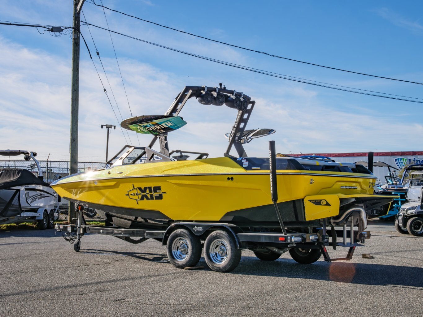 A High resolution Heavy Metallic Yellow (This Boat absolutely glows on the water)  Featuring the PCM Monsoon 409 engine, Dual battery set up, Pull up cleats, Power Wedge 3, Surfgate with surfband, Wet Sounds audio system, 10″ subwoofer, Wet Sounds tower speakers, Fire suppression system, Flip up bolster drivers seat, Snap out carpet, Bimini top, Boat cover, Heater, Tandem axle. Malibu trailer with swing tongue.