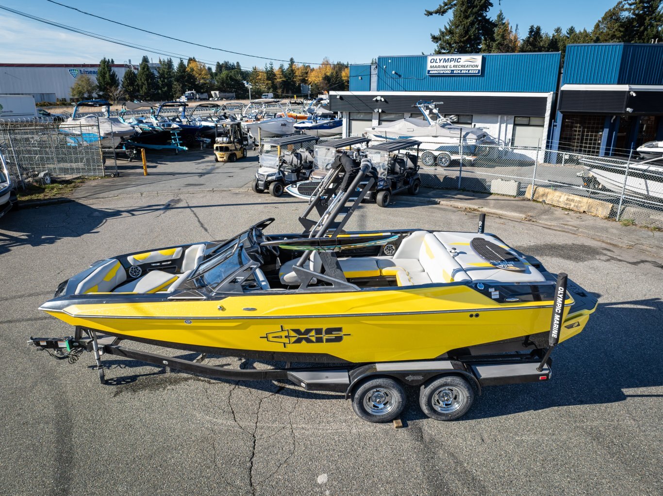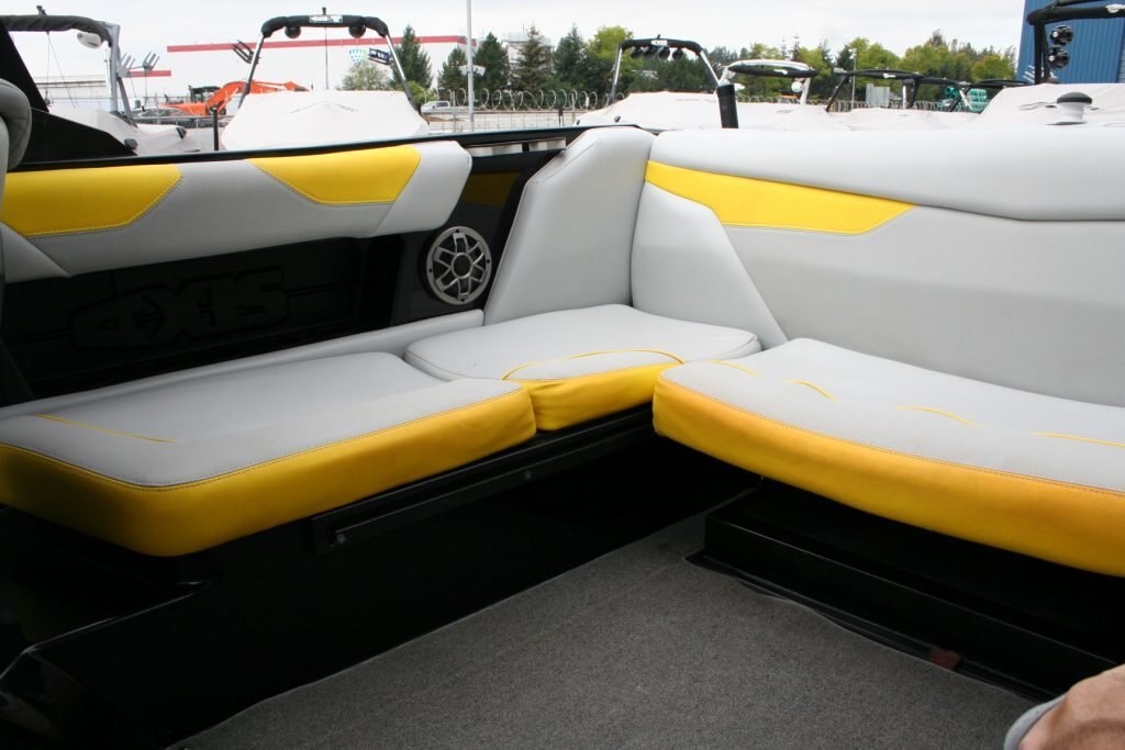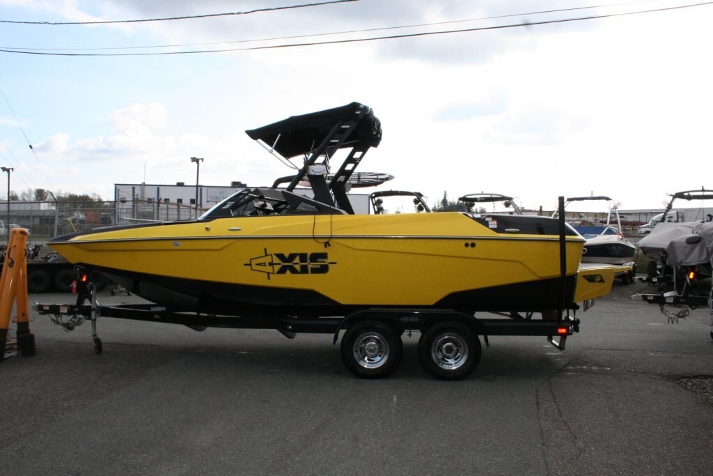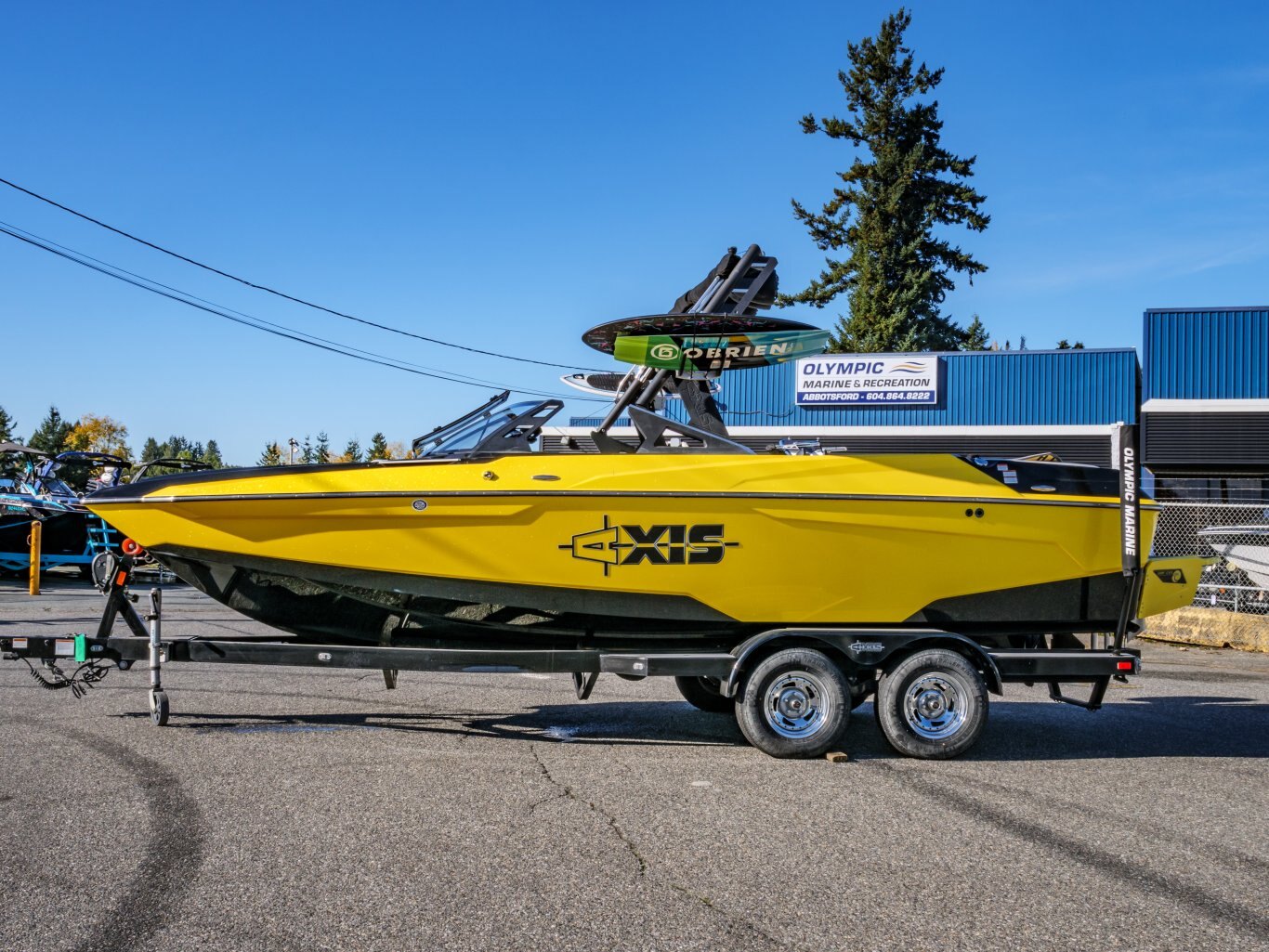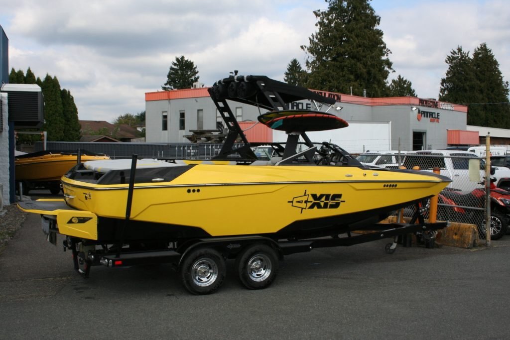 The 2019 Axis A22 was a fully redesigned boat built with the rider in mind. It boasts a classic Axis hull design, a spacious pickle-fork bow, and the innovative Wake Plus™ hull for unparalleled performance. Complete with the new Surf Gate™ design, this 22-foot vessel comfortably seats up to 15 people and has a dry weight of 4,500 lbs.