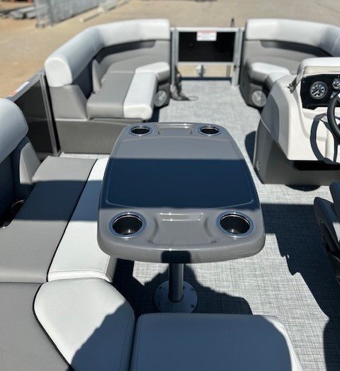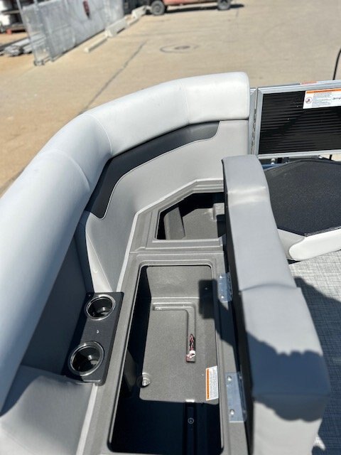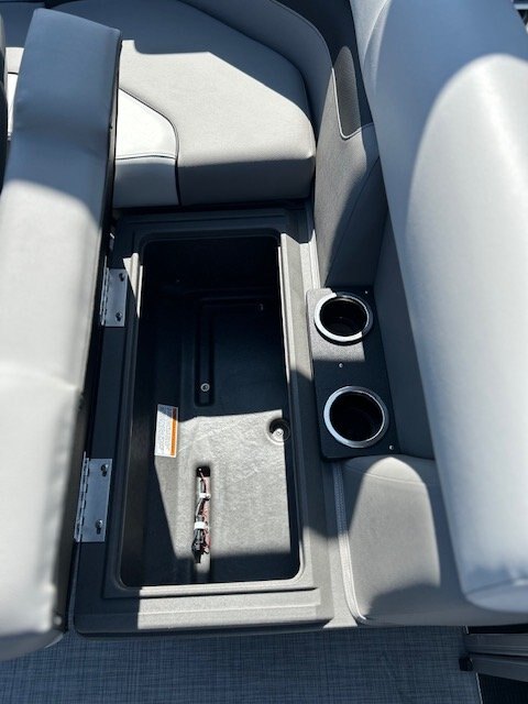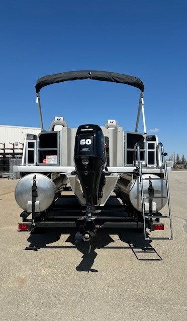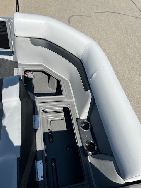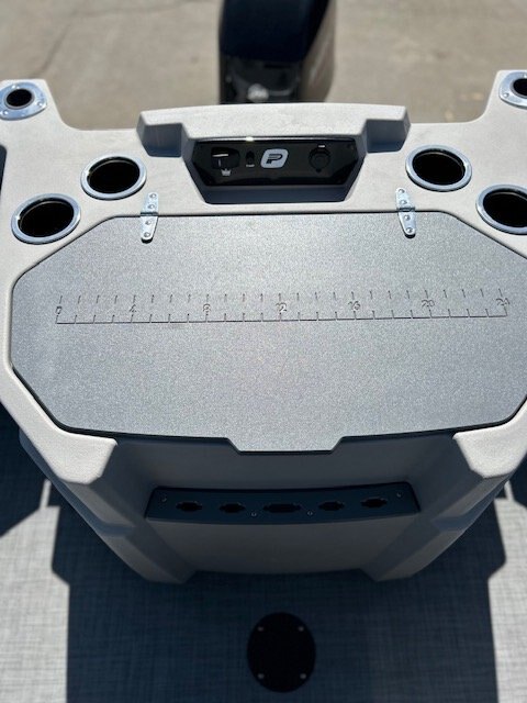 Fishing station including 33" long builtin electric-filled aerated stern livewell (83 L / 22 U.S. gal.), tool holder, fish ruler, cup-holders and USB plugs